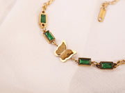 Green Gemstone Butterfly Bracelet | Gold Plated Dainty Chain Bracelet for Girls & Women | Trendy Korean-Inspired Jewelry