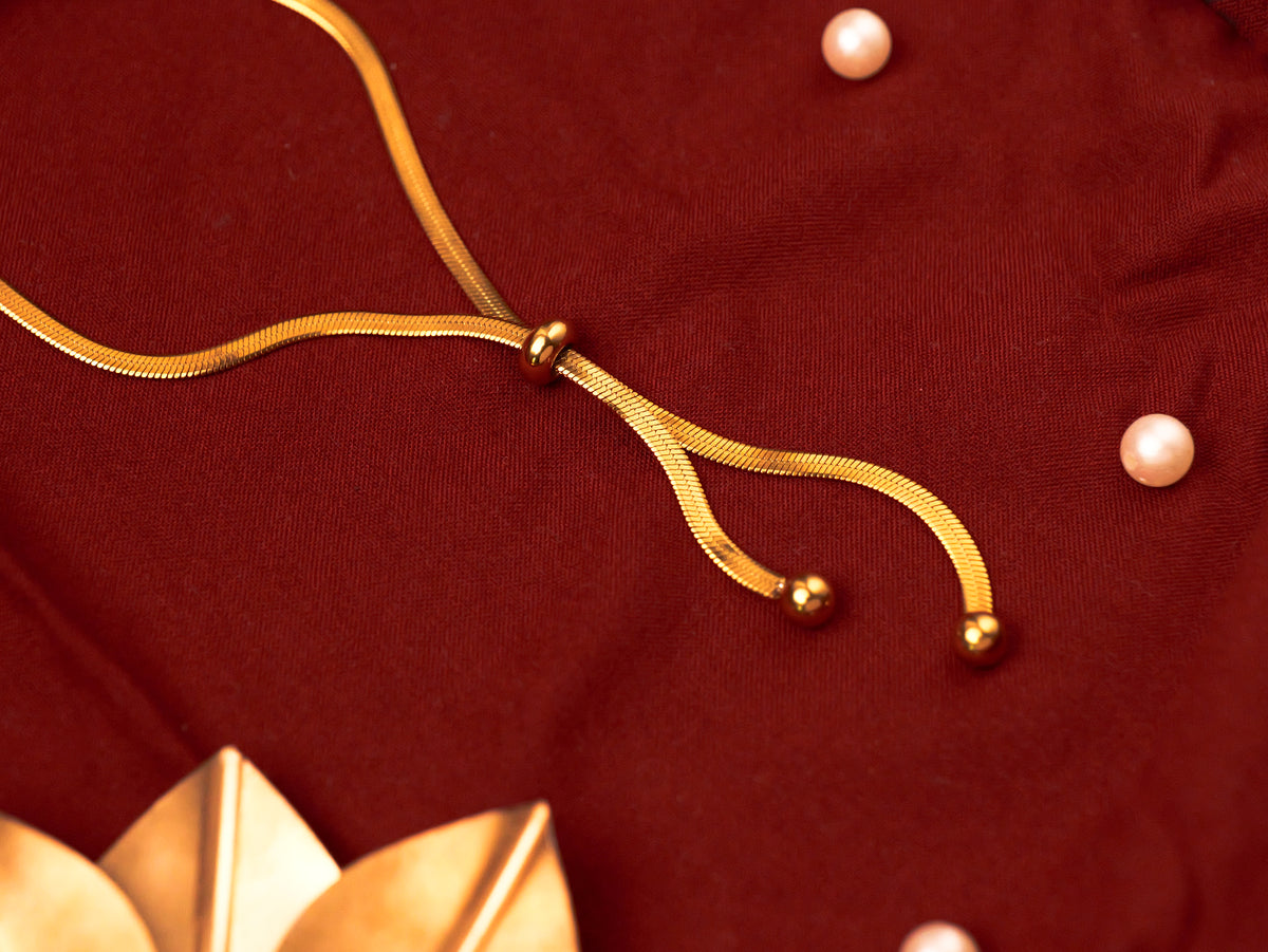 Grace meets modern charm in this stunning gold-tone lariat necklace, featuring sleek snake chains that end in delicate bow-shaped drops. The adjustable sliding design allows you to customize the length for a perfect fit, making it a versatile accessory for both casual and formal looks. A timeless piece that adds a touch of femininity and sophistication to any outfit.