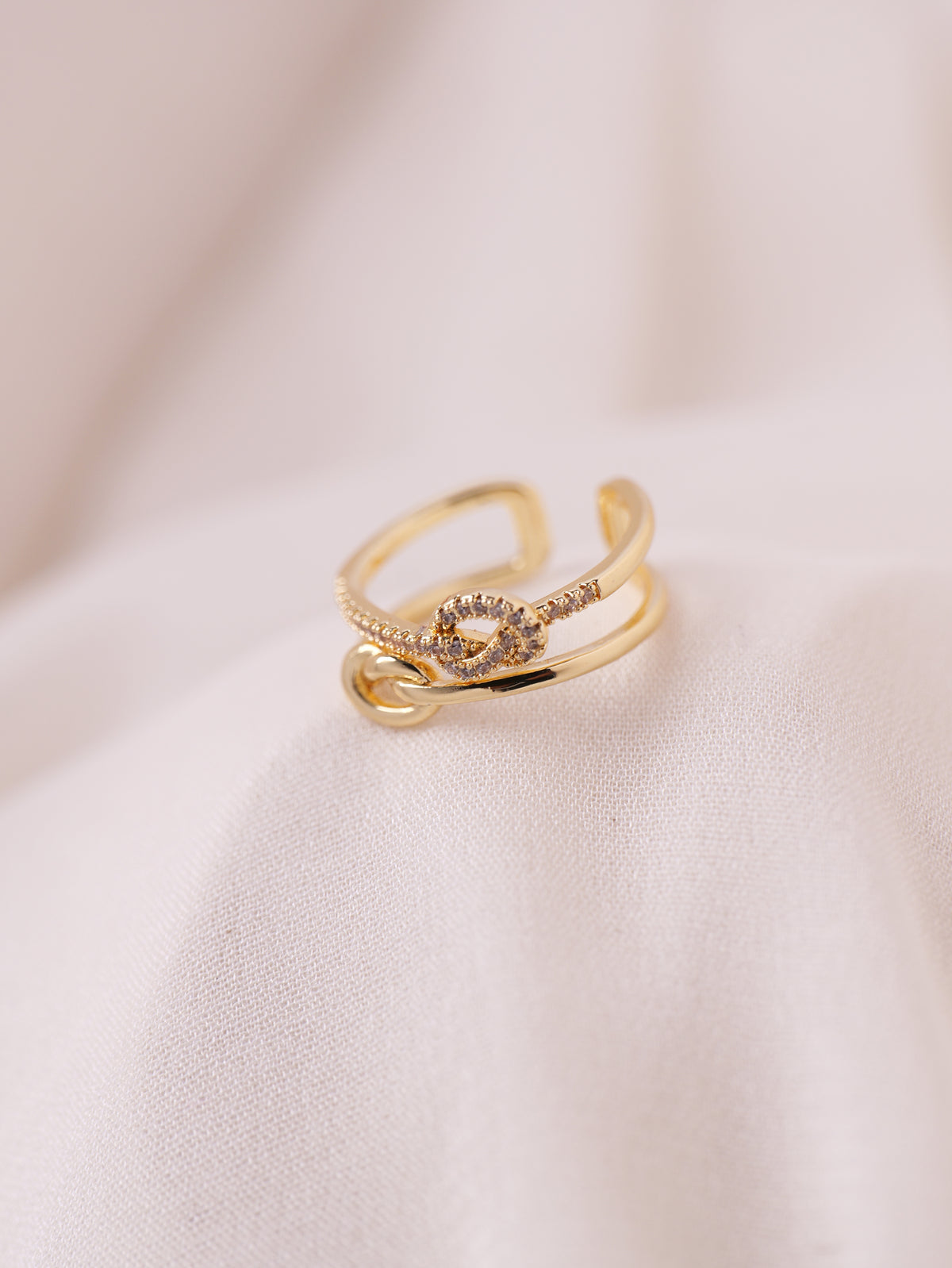 Refined and modern, the Loop Charm Ring by EKKAYA brings a touch of playful sophistication to your collection. Designed with a delicate gold band, it features an elegant loop accent—half embellished with shimmering cubic stones and half in polished gold. A perfect balance of sparkle and simplicity, ideal for both everyday wear and special occasions.