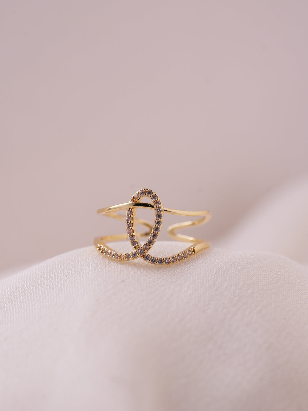 The Twisted Harmony Ring by EKKAYA embodies balance and sophistication. Crafted in lustrous gold with a delicately twisted band, it symbolizes unity and strength. The interlocking design creates a modern yet timeless look, perfect for everyday wear or as a meaningful statement piece.